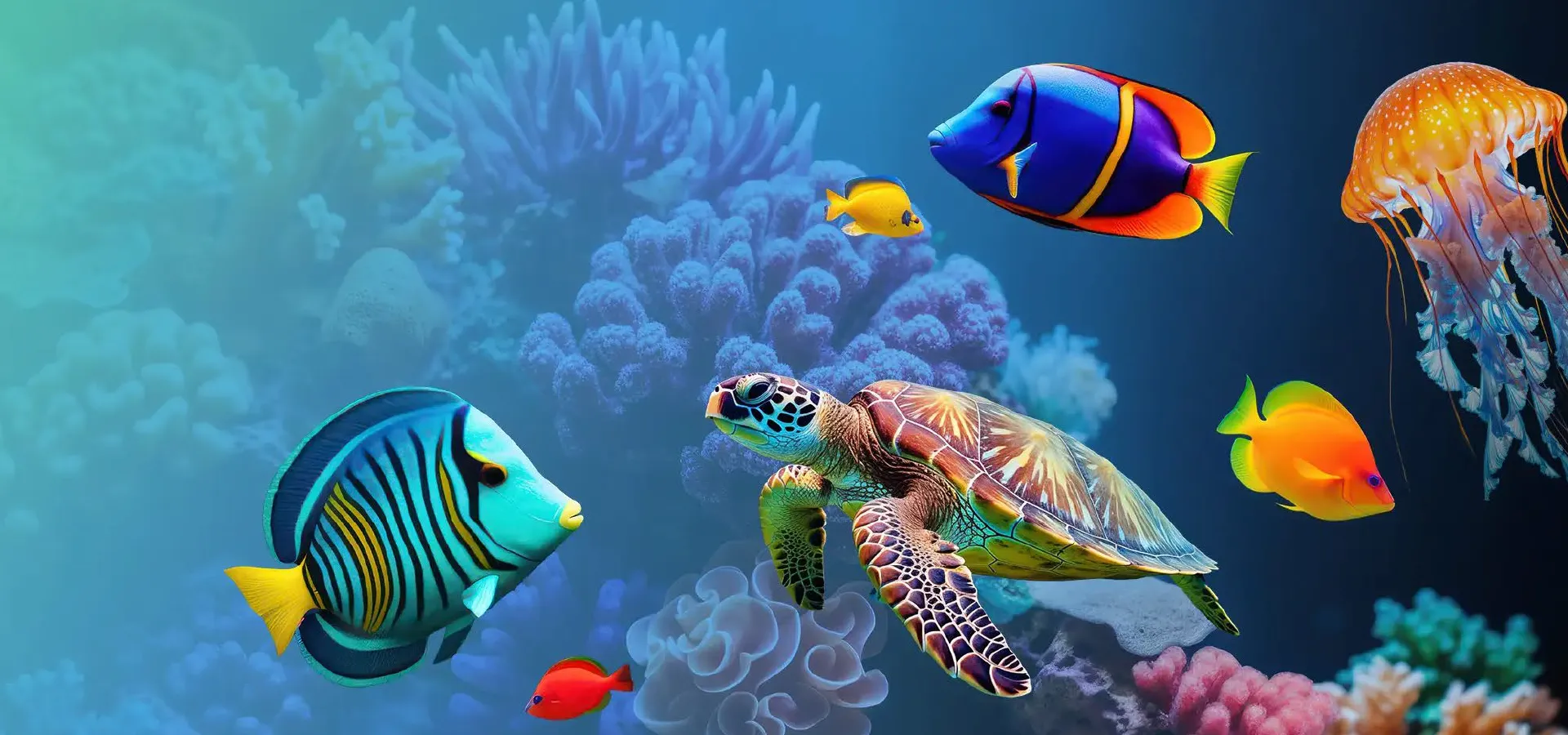 Die Welt der HR-Software gleicht einem Meer der Möglichkeiten: Die Schildkröte steht für Stabilität, der Fisch für Vielseitigkeit und die Qualle für Flexibilität.